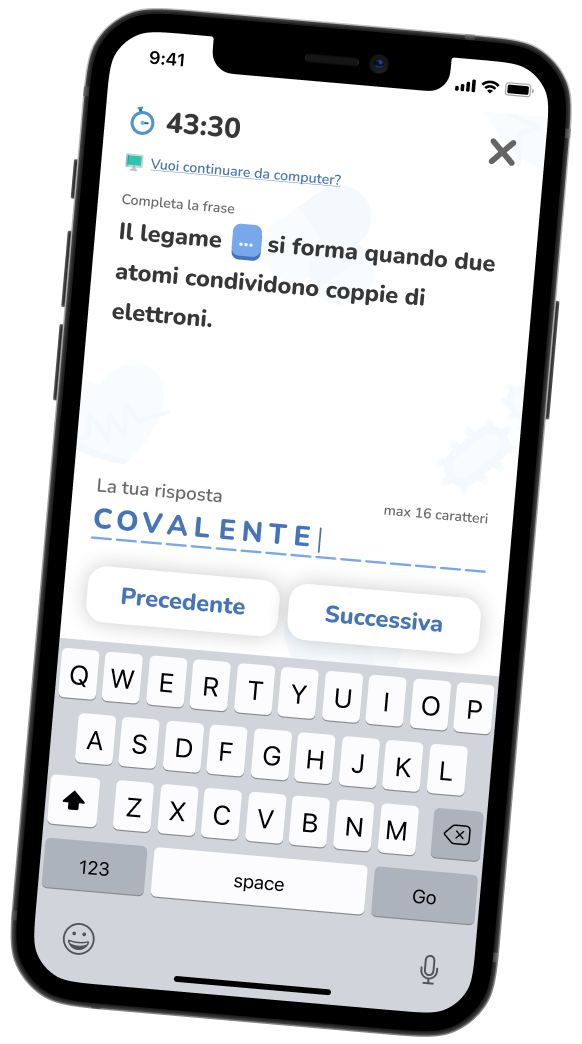 Biologia, chimica e fisica: 31 domande (15 a scelta multipla e 16 a completamento) in